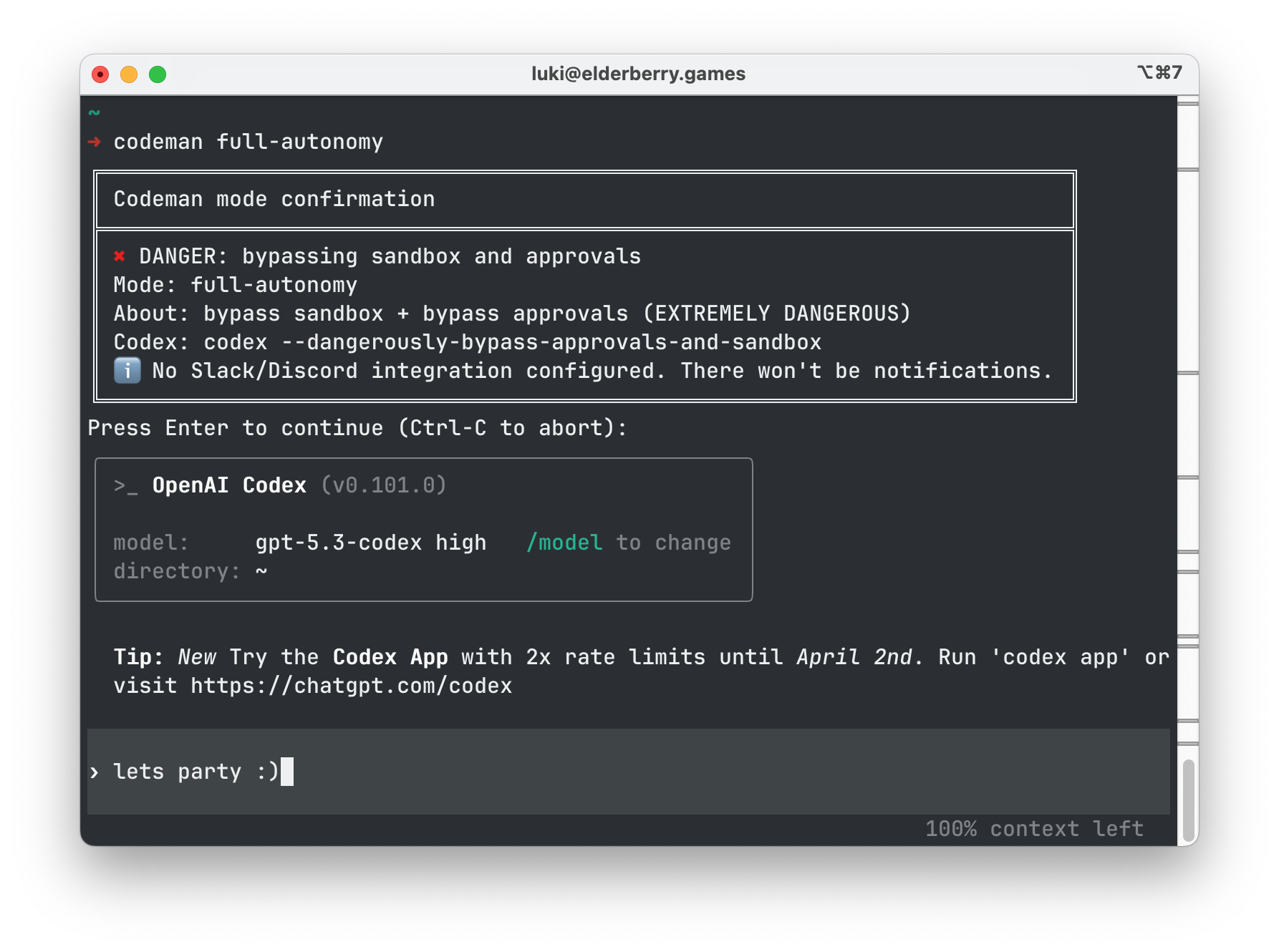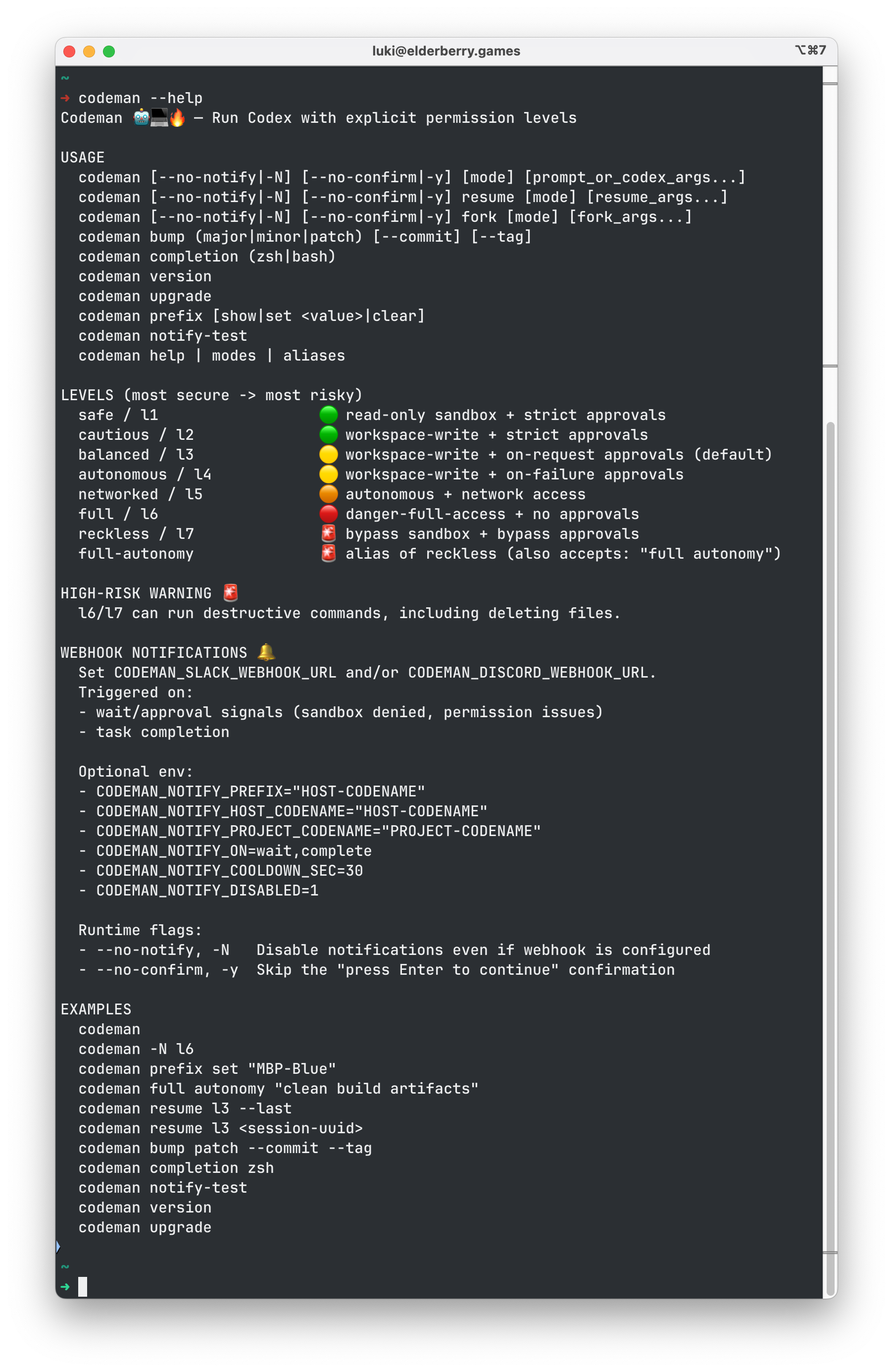 Codeman is a thin launcher around codex that makes sandbox and approval selection explicit, fast,